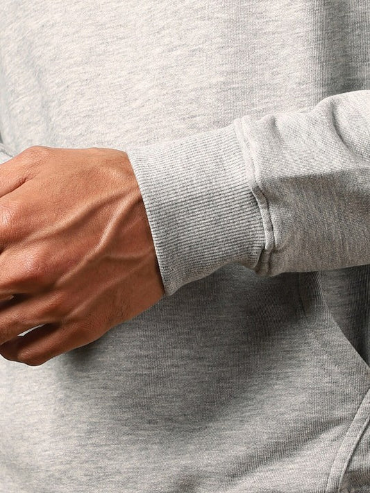 Grey Melange Solid Hoodie – 100% Cotton, Regular Fit for Men