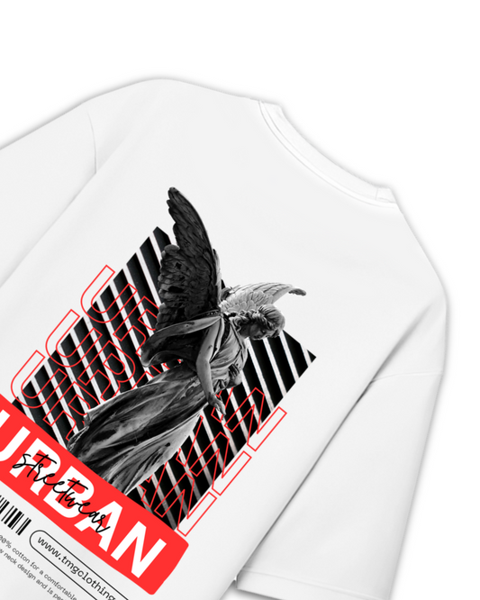 White Urban Streetwear Statue Oversized T -Shirt